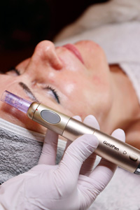 Bei einem Microneedling handelt es sich um eine minimalinvasive kosmetische Behandlung, bei der ein mit feinen Nadeln („microneedles“) Dermapen winzige Stiche (Kanäle) in die Haut setzt.